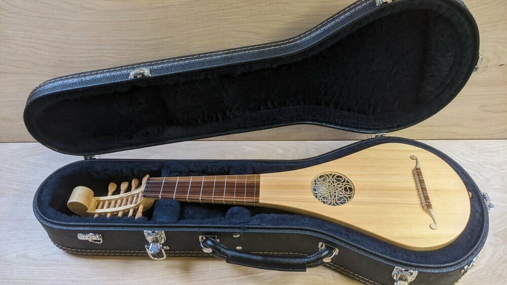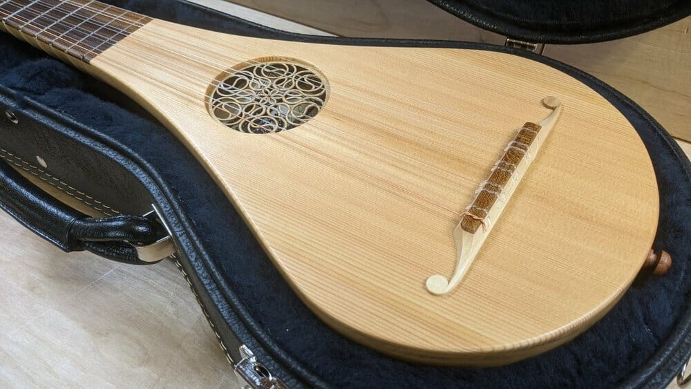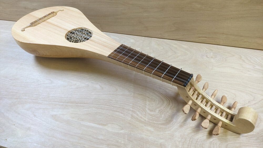 45 cm scale with 9 frets on the fingerboard. 9 string, 5 course (single top) – strung in nylon and PVF..