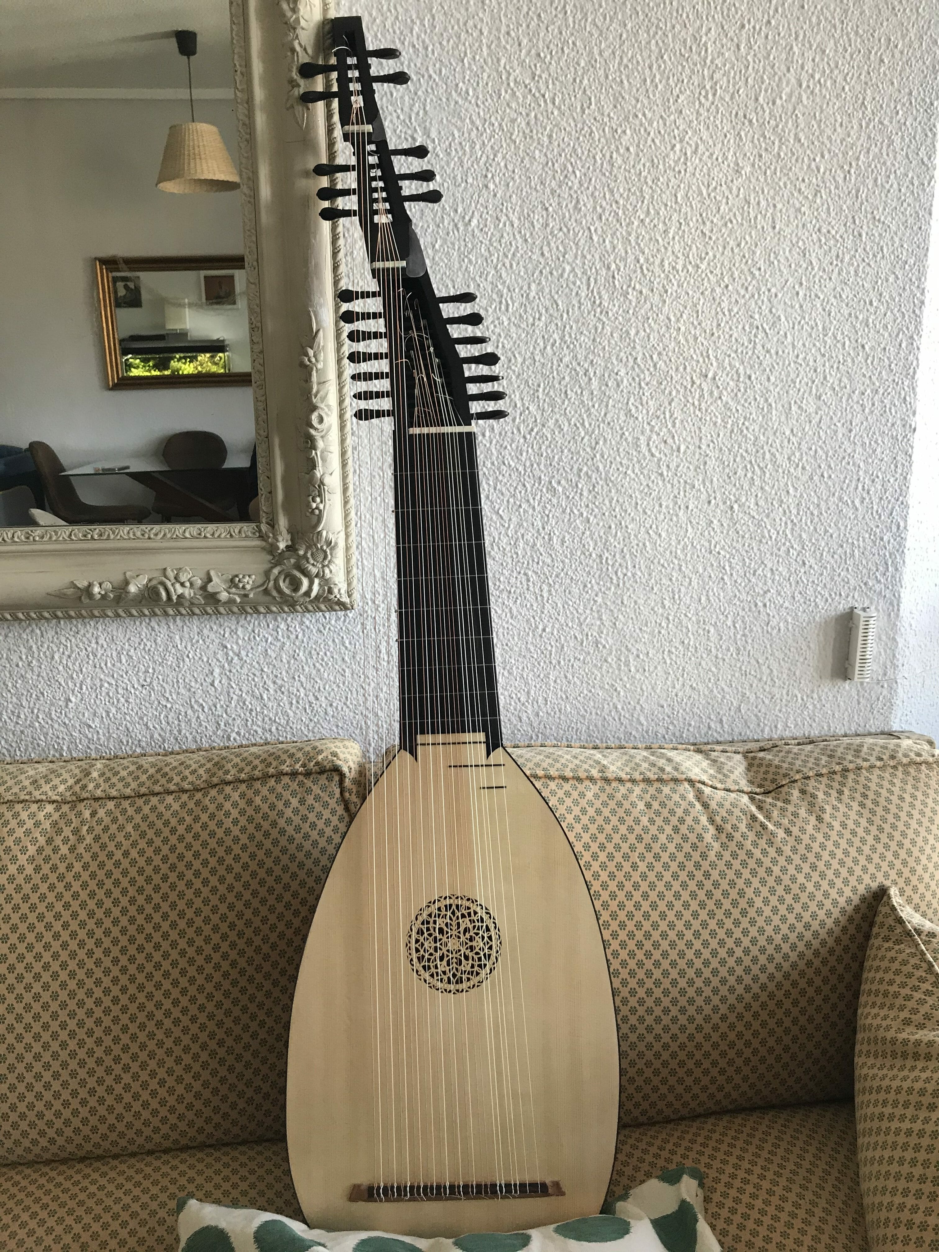 Carlos Aricón pone a la venta un laúd barroco de 13 órdenes con triple clavijero (tipo Jauck).