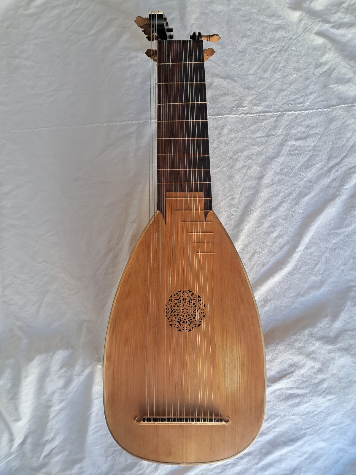 El laúd perteneció al laudista Oliver Holzenburg. Se envían audios y vídeos del instrumento.
