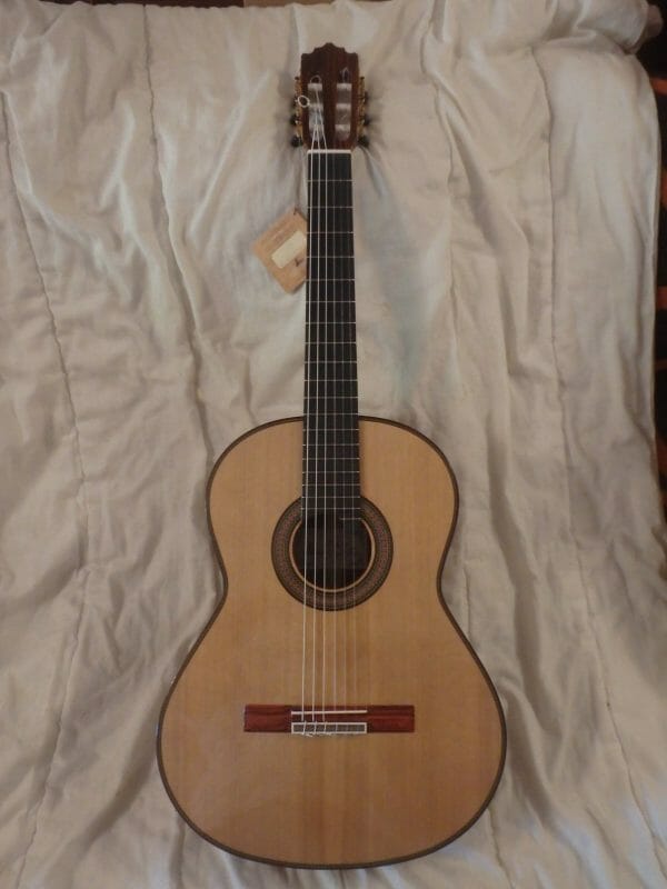 Enrique Rosales pone a la venta una guitarra construida por Paco Castillo (Valencia, España). 2018, basada en el modelo 205. El instrumento tiene un excelente sonido muy equilibrado y una correcta afinación. Aros y fondos: Cocobolo mexicano AAA. Tapa: Cedro canadiense especial. Mástil: Samanguila. Diapasón; Ébano africano. Puente: Cocobolo. Marquetería. Clavijeros. Van Gent de lujo […]