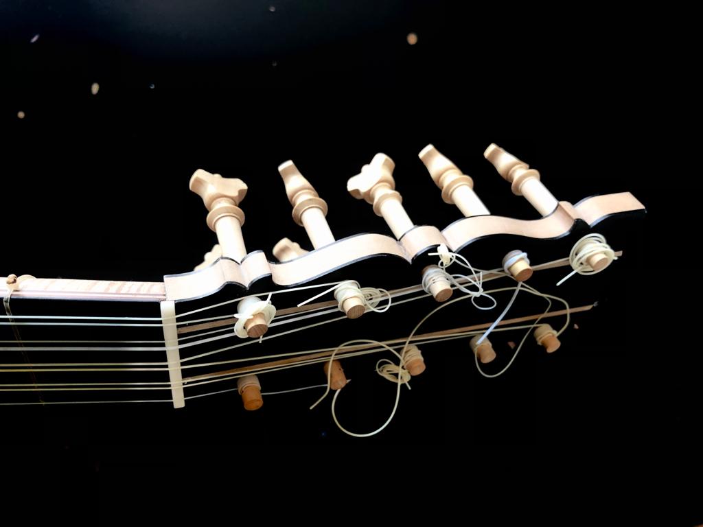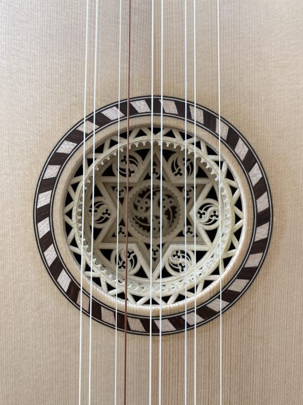 This baroque guitar was built in 2023 by Régis Floury, who has his workshop in Vigo, Galicia. It is made using ancient traditional techniques without machinery. The body is made of walnut, maple, and amaranth with ebony purfling. The soundboard is made of Sitka spruce. The neck is crafted from maple veneer with a marquetry [...]